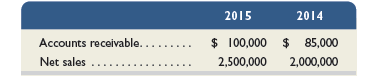 2015 2014 Accounts receivable... $ 100,000 $ 85,000 Net sales .... 2,500,000 2,000,000