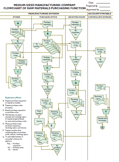 > Anthony Liu, CPA, prepared the flowchart on the next page that portrays the raw materials purchasing function of one of Anthony’s clients, Medium-Sized Manufacturing Company, from the preparation of initial documents through the vouching of invoices for
