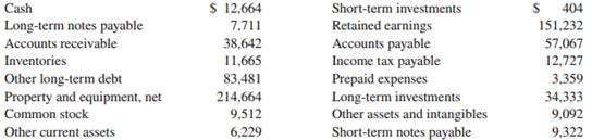 Cash S 12,664 Short-term investments 404 7,711 151,232 Long-term notes payable Accounts receivable Inventories Retained earnings Accounts payable Income tax payable Prepaid expenses Long-term investments Other assets and intangibles Short-term notes payable 38,642 57,067 11,665 12,727 3,359 Other long-term debt Property and equipment, net Common stock 83,481 214,664 34,333 9,092 9,512 Other current assets 6,229 9,322