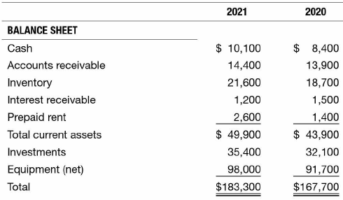 > The following balance sheet and income statement data were taken from the records of L. L. Beeno for the year ended December 31, 2021: Prepare the operating section of the statement of cash flows, and present it under both the direct and indirect methods