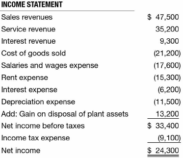 > Mary began a business, and after collecting $30,000 from an equity investor and borrowing $15,000 from a bank, she purchased a piece of land for $40,000. During the year, she leased the land to Karl and received $12,000 in cash, paying $14,000 cash for e
