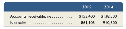 2015 2014 Accounts receivable, net. $153,400 $138,500 Net sales 861,105 910,600 ...