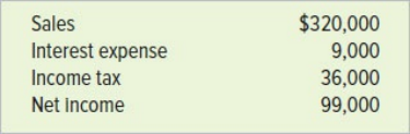 Sales $320,000 Interest expense 9,000 36,000 Income tax Net income 99,000