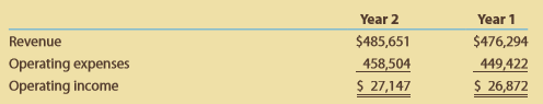 Year 2 Year 1 Revenue $485,651 $476,294 Operating expenses Operating income 458,504 449,422 $ 27,147 $ 26,872