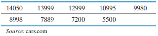 The following data represent the sales price (in dollars) for nine 2-year-old Chevrolet Cobalts in the Los Angeles area.