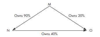 The following diagram depicts the investment affiliations among Companies M, N, and O: