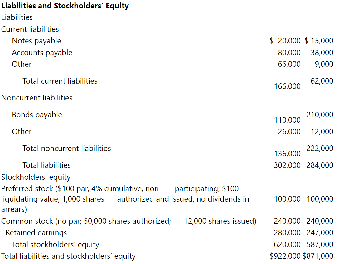 > Bluffton Company’s stock is quoted at $16 per share at December 31, Year 4 and Year 3. Bluffton’s financial statements follow. Table Summary: A table shows the Balance Sheets as of December 31 in thousands. Column 1 ha