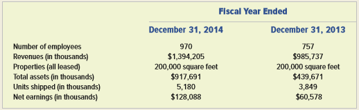 Fiscal Year Ended December 31, 2014 December 31, 2013 Number of employees Revenues (in thousands) Properties (all leased) Total assets (in thousands) Units shipped (in thousands) Net earnings (in thousands) 970 757 $1,394,205 200,000 square feet $917,691 $985,737 200,000 square feet $439,671 5,180 $128,088 3,849 $60,578
