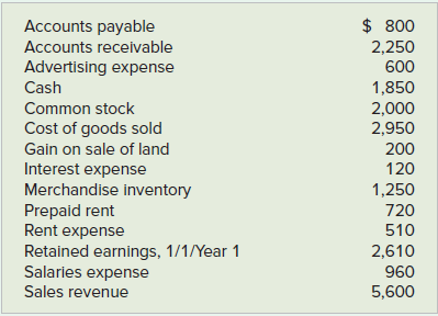 > The following information was drawn from the accounting records of Chapin Company. 1. On January 1, Year 1, Chapin paid $56,000 cash to purchase a truck. The truck had a five-year useful life and a $6,000 salvage value. 2. As of December 31, Year 1, Chap