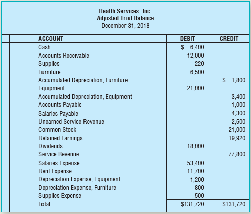 The following is the adjusted trial balance of Health Services, Inc., for December 31, 2018