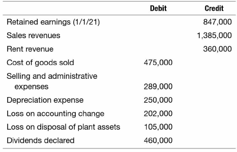 b. Prepare a reconciliation of retained earnings for the year ended December 31, 2021.