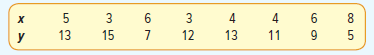 X 3 3 4 4 6 y 13 15 7 12 13 11 9