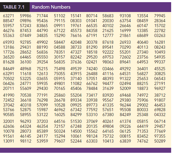 Suppose you would like to select a sample of six of these companies to conduct an indepth study of management practices. Use the first two digits in each row of the ninth column of Table 7.1 to select a simple random sample of six companies.