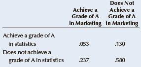 Does Not Achieve a Grade of A Achieve a Grade of A in Marketing in Marketing Achieve a grade of A in statistics .053 .130 Does not achieve a grade of A in statistics .237 580