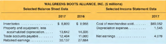 The following table presents selected items from the 2017 and 20 I 6 balance sheets and 20 I 7 income statement of Walgreens Boots Alliance, Inc.