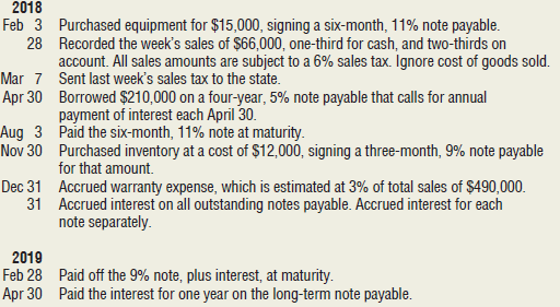 > The following transactions of Newport Marine Supply occurred during 2018 and 2019 Requirement 1. Record the transactions in the company’s journal. Explanations are not required.