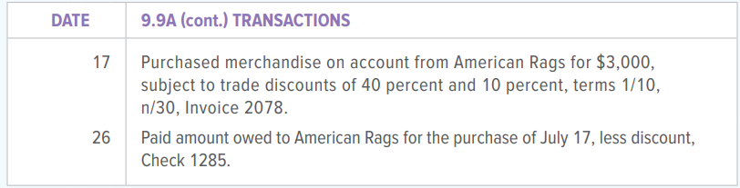 > The Old English Garden Shop is a retail store that sells garden equipment, furniture, and supplies. Its credit purchases and purchases returns and allowances for July are listed below. The general ledger accounts used to record these transactions are als