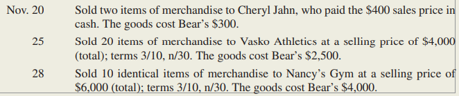 The following transactions were selected from among those completed by Bearâs Retail Store: