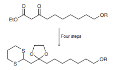 > Compound 2, a pheromone of the honeybee queen, has been shown to have antibacterial and anti-inflammatory properties. One laboratory synthesis of this pheromone involved the preparation of 1, followed by the conversion of 1 into 2. Using an acetoacetic e