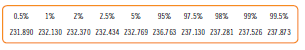 150- 100 50 232 234 236 238 Mean Cholesterol * of Samples 0.5% 1% 2% Z.5% 5% 95% 97.5% 98% 99% 99.5% 231.890 232.13D 232.370 232.434 232.769 236.763 237.130 237.281 237.526 237.873