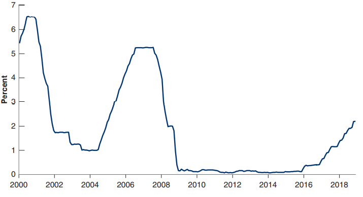 > Use the FRED database at the Federal Reserve Bank of St. Louis to find the monthly average nominal policy interest rates for four major central banks. The series for these rates are: United States, federal funds (FEDFUNDS); United Kingdom, (INTDSRGBM193N