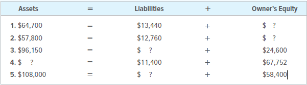 > Just before Henderson Laboratories opened for business, Eugene Henderson, the owner, had the following assets and liabilities. Determine the totals that would appear in the firm’s fundamental accounting equation (Assets = Liabilities +