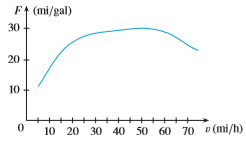 The graph (from the US Department of Energy) shows how driving speed affects gas mileage. Fuel economy F is measured in miles per gallon and speed v is measured in miles per hour.