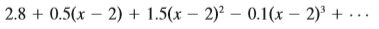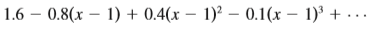 y f 1 1.6 – 0.8(x – 1) + 0.4(x – 1)? – 0.1(x – 1)³ + ... 2.8 + 0.5(x – 2) + 1.5(x – 2)² – 0.1(x – 2)³ + · ..