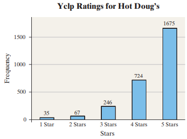 The graph shows the ratings on Yelp for Hot Doug’s Restaurant.