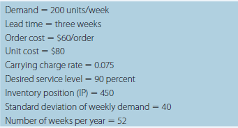 > Berta’s Shoe Company is considering a change of their current inventory-control system for soccer shoes. The information regarding the shoes is given below: The company decides to use a fixed-order-quantity system. Use the FQS Safety St