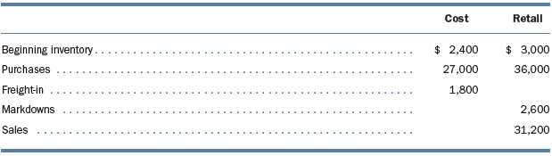 > Carmel Department Store uses the retail inventory method. On December 31, 2013, the following information relating to the inventory was gathered: Compute the ending inventory value at December 31, 2013, using the: 1. Average cost method 2. Lower-of-cos
