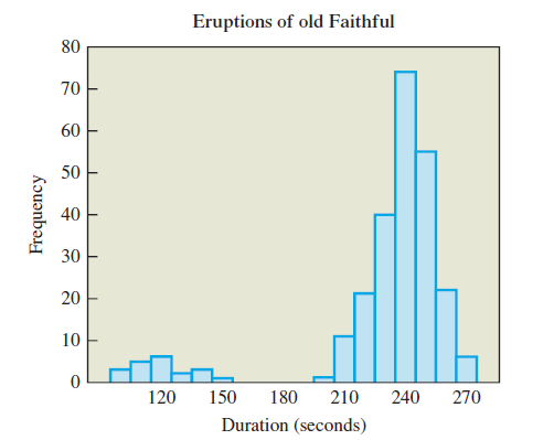 The histogram in Figure 4.12 shows duration times of eruptions of the Old Faithful geyser in Yellowstone National Park.