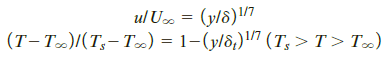 The integral method also can be applied to turbulent-flow conditions if experimental data for the wall shear stress are available. In one of the earliest attempts to analyze turbulent flow over a flat plate, Ludwig Prandtl proposed in 1921 the following relations for the dimensionless velocity and temperature distributions: