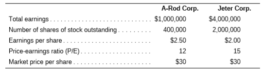 The Jeter Corporation is considering acquiring the A-Rod Corporation.