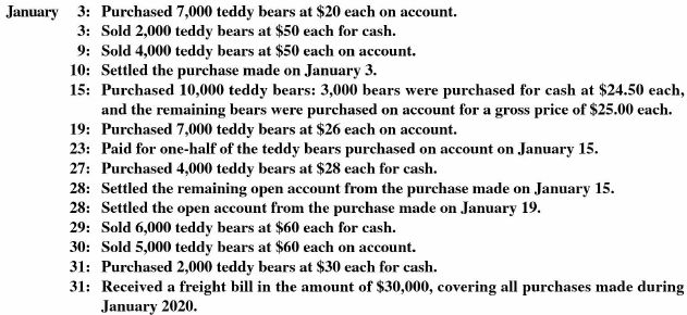 The Magic Teddy Bear Toy Company has 5,000 teddy bears on hand at $ 19 each as of January 1, 2020.