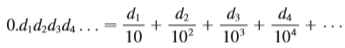 The meaning of the decimal representation of a number 0.d1d2d3 ... (where the digit di is one of the numbers 0, 1, 2, . . . , 9) is that