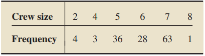 The National Aeronautics and Space Administration (NASA) compiles data on space-shuttle launches and publishes them on its website. The following table displays a frequency distribution for the number of crew members on each shuttle mission from April 12, 1981 to July 8, 2011.
