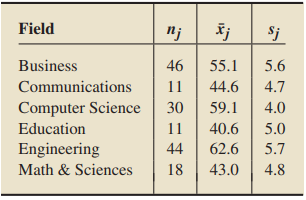 At the 1% significance level, do the data provide sufficient evidence to conclude that a difference exists in mean starting salaries among bachelor’s-degree candidates in the six fields? Note: For the degrees of freedom in this exercise: