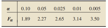 > Find the required F -values. For an F-curve with df = (20, 21), find a. F0.01. b. F0.05. c. F0.10.
