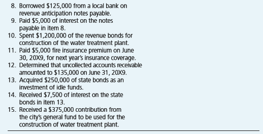> The numbered items on the left consist of a variety of transactions and events that occurred in the capital projects and debt service funds of Walton City for the year ended June 30, 20X9. Items A, B, and C on the right represent three categories that ar