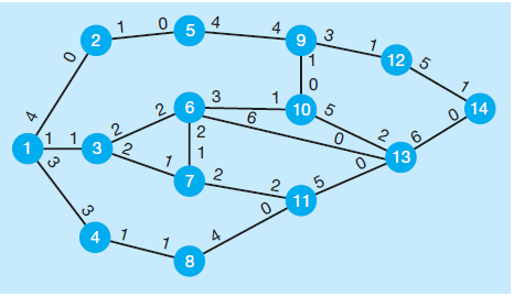 > Grey Construction would like to determine the least expensive way of connecting houses it is building with cable TV. It has identified 11 possible branches or routes that could be used to connect the houses. The cost in hundreds of dollars and the branch