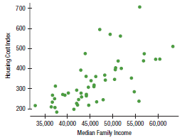 The Office of Federal Housing Enterprise Oversight (www.ofheo.gov) collects data on various aspects of housing costs around the United States. Here is a scatterplot of the Housing Cost Index versus the Median Family Income for each of the 50 states. The correlation is 0.65.