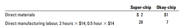 Super-chip Okay-chip Direct materials $ 2 $1 28 7 Direct manufacturing labour, 2 hours x $14; 0.5 hour × $14