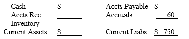 Cash Accts Payable $ Accruals Accts Rec 60 Inventory Current Assets Current Liabs $ 750