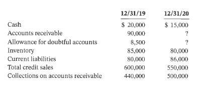 > The SFP of Alice Inc. at December 31, 2019, includes the following: Transactions in 2020 include the following: 1. Accounts receivable of $146,000 was collected. 2. Customer accounts of $39,500 were written off during the year. 3. An additional $16,700