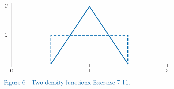 The population density function and that for the sampling distribution of X, for n = 2, are shown in Figure 6. Identify which one is the sampling distribution and explain your answer.