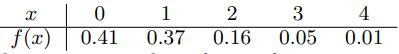 1 2 3 4 f(x) 0.41 0.37 0.16 0.05 0.01