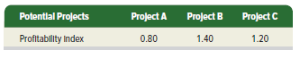 The profitability indexes for three alternative investment projects follow. Each project has a five-year life.