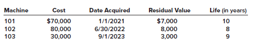 The straight-line method is used to determine depreciation on the equipment. On March 31, 2024, Machine 102 was sold for $52,500. Early in 2024, the useful life of machine 101 was revised to seven years in total, and the residual value was revised to zero.