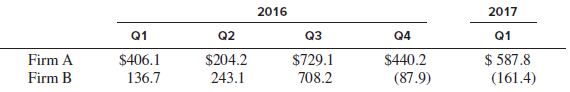 2. Suppose that Firm Bâs cash flow was $200 higher each quarter (e.g., $336.7 in Q1 of 2016). Explain why Firm B might still be judged to have higher credit risk than Firm A.